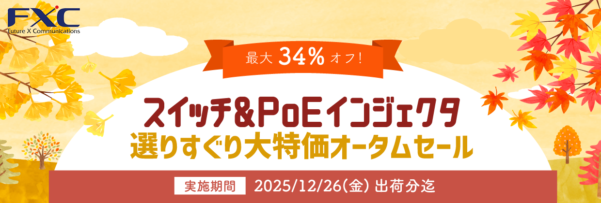 FXCでは選りすぐりのスイッチとPoEインジェクタを最大34% OFFの特別価格でご提供するキャンペーンを実施中!