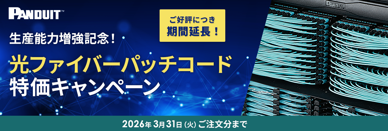 世界が認めるパンドウイット品質を、今だけの特別価格で。光ファイバーパッチコード生産増強記念特価キャンペーン実施中!
