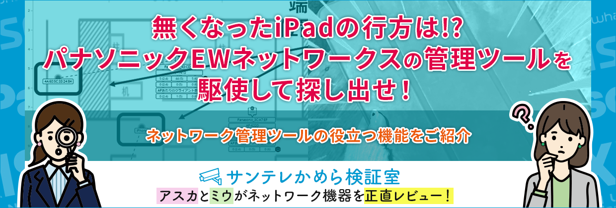 実際に紛失したiPadを捜索しながら、パナソニックEWネットワークスの最新機種と管理ツールの使い勝手をレポートします!